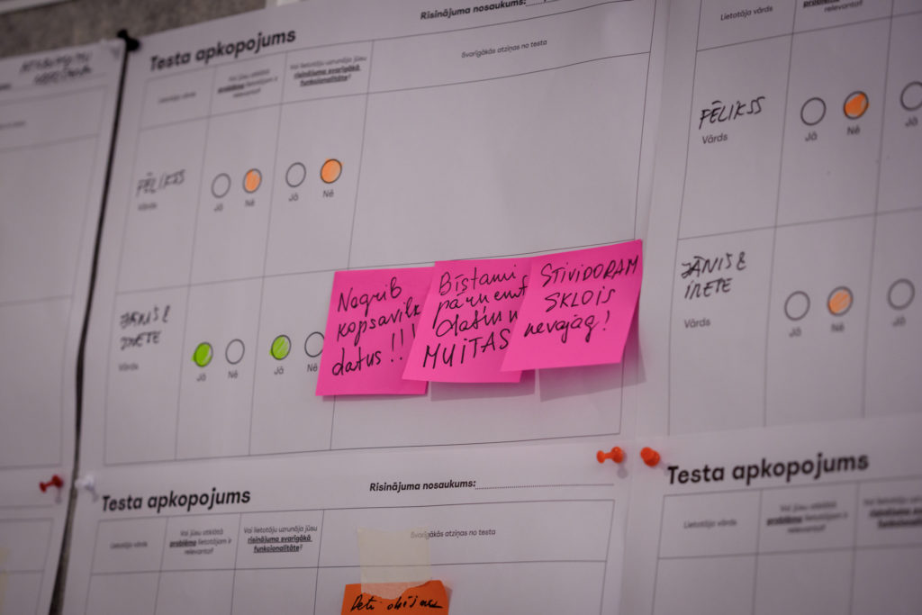 Olita Magone stāsta, kāda bija inovācijas sprinta laikā veidotā sadarbība ar lietotājiem salīdzinājumā ar SM iepriekš veikto darbu: “Lietotāju izpētes process mums sākās jau divus gadus iepriekš, bet tad bija sajūta, ka lietotājs mums ne vienmēr noticēja. Inovācijas laboratorija piedāvāja ar interesantām, inovatīvām metodēm palīdzēt noskaidrot, kas lietotājam ir vajadzīgs. Caur šo inovācijas sprintu mēs satikāmies ar lietotāju ne vairs kā valsts pārvaldes iestāde, kas raksta vēstules vai rīko tikšanās, bet strādājām pieredzējušu fasilitatoru un pakalpojumu dizaineru vadībā. Interesantākais beigās bija, ka lietotāji apliecināja, ka viņos ir pamodusies interese un ticība, ka kaut kas mainīsies! Lai jums šoreiz izdodas, man teica tie lietotāji, kurus intervēju, un, manuprāt, tas ir labākais novērtējums mūsu darbam.”